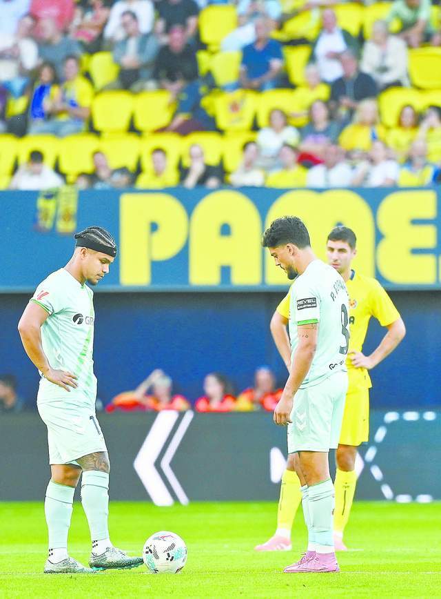 18日,西甲比利亚雷亚尔对阵皇家贝蒂斯的比赛中,球员站立不动以示抗议。 (法新社)